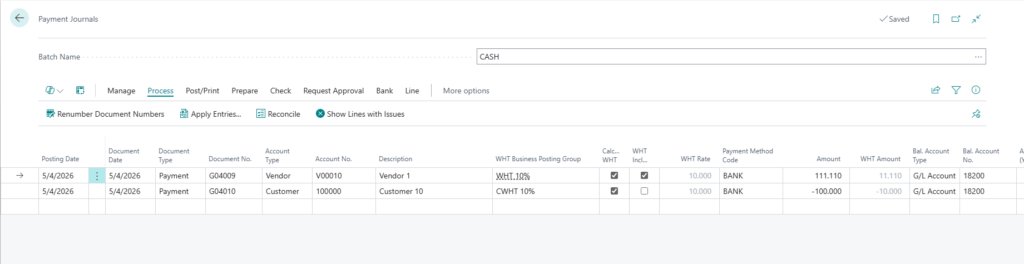| Mixed Journals | Supports vendor and customer WHT in the same batch |